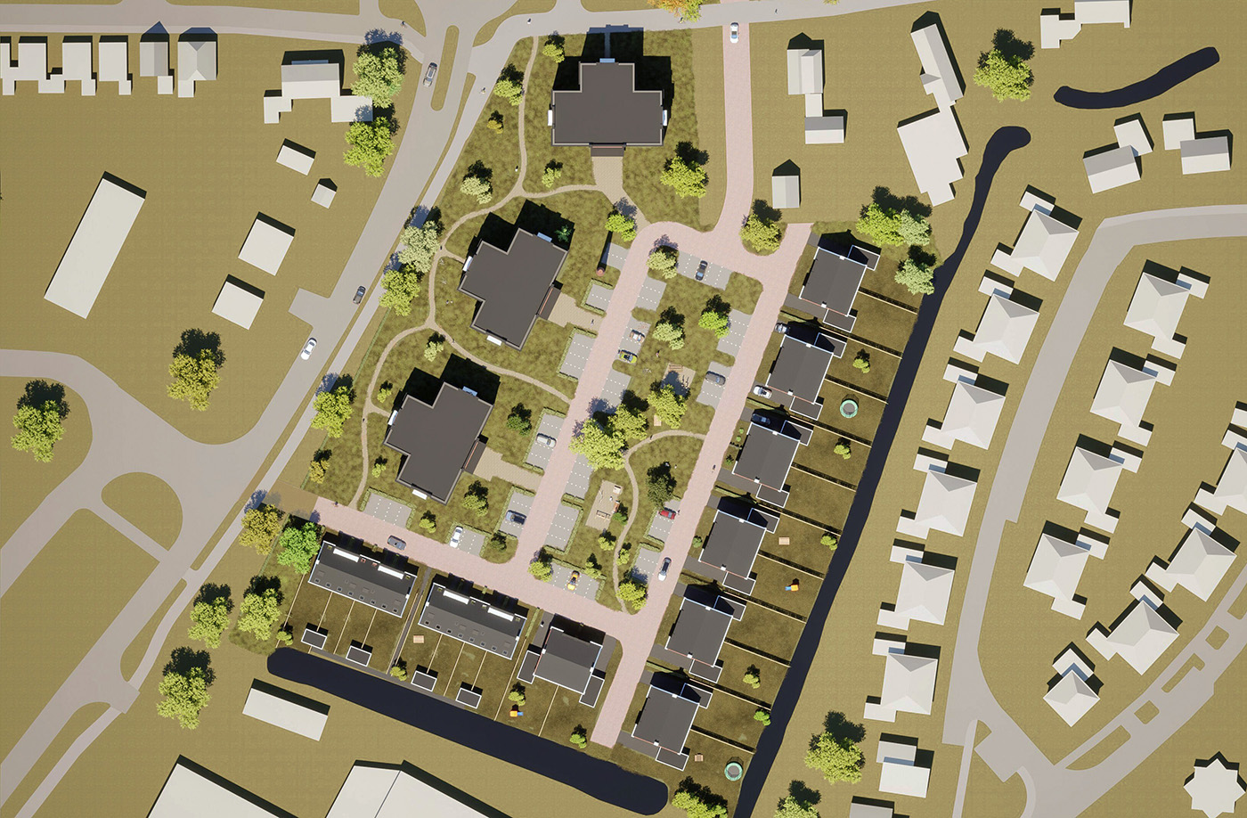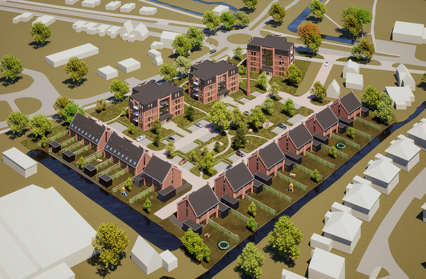 Kiest u voor een appartement op de bovenste verdieping van de grootste woontoren, dan geniet u bovendien van een loftachtige woning met een plafond dat doorloopt tot aan de nok van het gebouw.