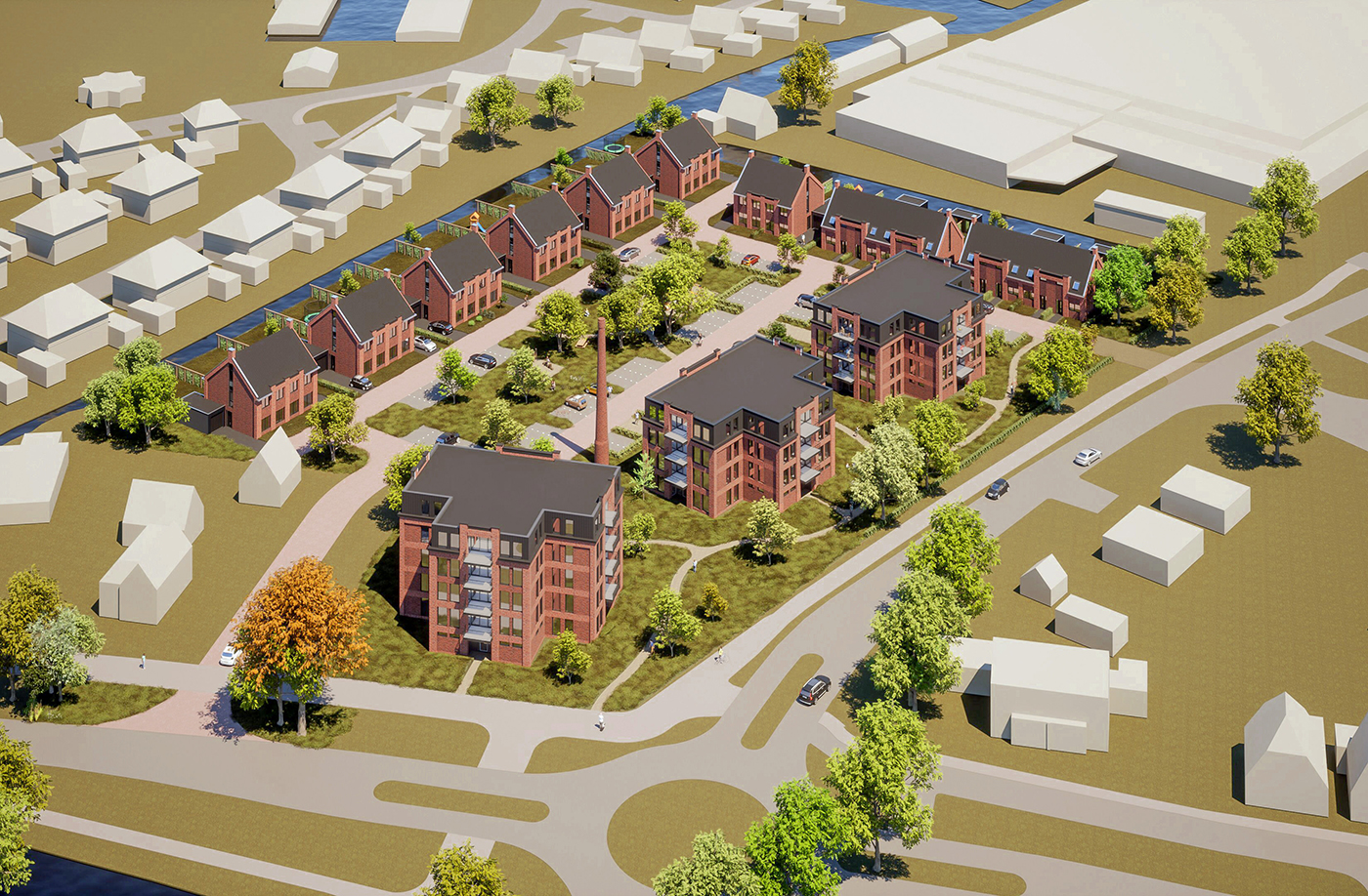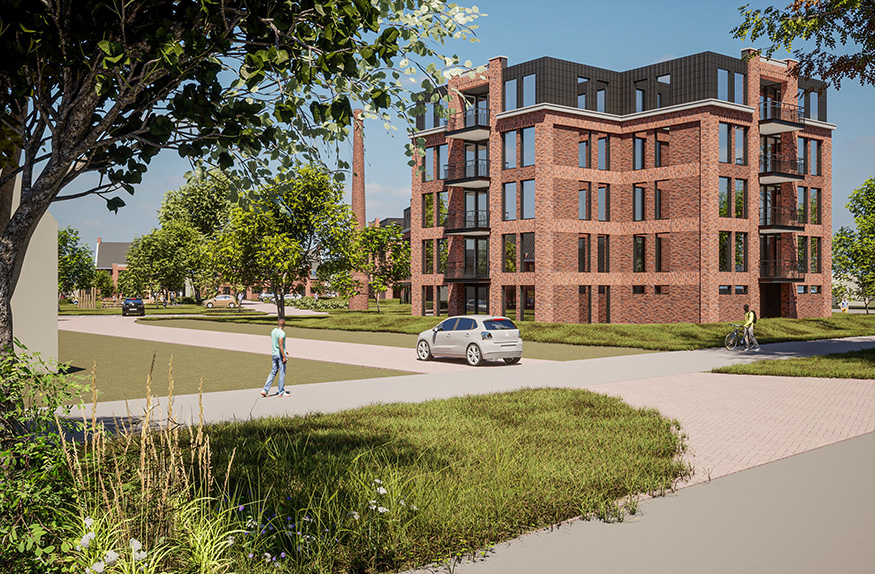 Aan welke kant van het gebouw u ook staat, de grote glaspartijen domineren de robuuste rode gevels. Deze imposante ramen zorgen naast een industriële look ook voor volop zonlicht in uw appartement. Kiest u voor een appartement op de bovenste verdieping van de grootste woontoren, dan geniet u bovendien van een loftachtige woning met een plafond dat doorloopt tot aan de nok van het gebouw.